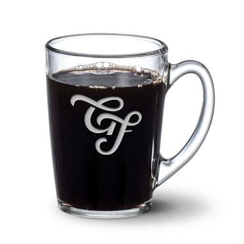 Of the Coffee Mugs, this beautiful Dundas Clear Mug - 11oz - Deep Etch is a great choice. (MUG121) The Dundas glass mug is tall and narrow, perfect for a double espresso. The graceful handle completes the design with symmetrical style.