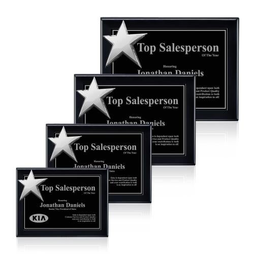Of the Ornamental Plaque, this beautiful Rising Star - Black/Chrome is a great choice. (AWP0112-C) High-Gloss Piano Finish Plaque with Rising Star Ornament Solid Brass Plates Gold or Chrome Vertical or Horizontal