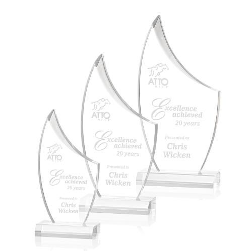 Of the Acrylic Awards, this beautiful Doncaster Award is a great choice. (AWD3821) The sail shape of the Doncaster Award is defined with deep bevels giving sparkling refinement to the acrylic surface and laser engraved imprint.