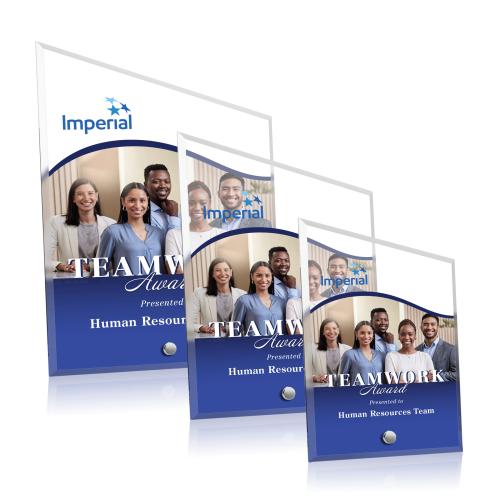 Of the Acrylic Awards, this beautiful Polaris Peak VividPrint™ Award - Silver is a great choice. (AWDV7731-S) The Polaris Peak VividPrint Award features a beveled acrylic rectangle with a slanted top that is held upright with a gold or silver easel pin. The Polaris series of awards are great budget-busting options for recognizing an exceptional employee or a corporate milestone.