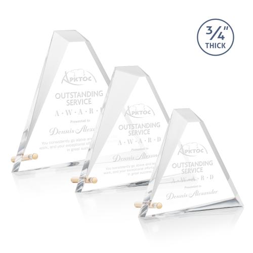 Of the Acrylic Awards, this beautiful Mosaic Triangle Award - Gold is a great choice. (1241.19-G) The acrylic Mosaic triangle award is 3/4" thick and perched upright with a gold or silver metal pin at the corner. Beautifully tapered with deep facets to create a unique geometric pyramid design.