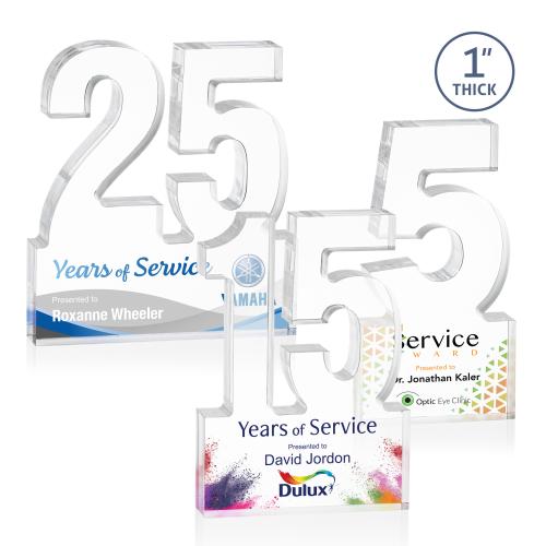 Of the Acrylic Awards, this beautiful Astoria VividPrint™ Award is a great choice. (AWDV428-01) Recognize a major milestone with the Astoria Acrylic VividPrint Awards. Featuring free-standing numbers molded into an oversized base for decorating with a special message. A great choice when recognizing years of service or to commemorate a significant event. Decoration is available on base only, for full-color imprint on the numbers, please select VividPrint Double-Sided.