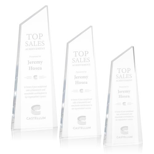 Of the Acrylic Awards, this beautiful Hudson Award - Clear is a great choice. (AWD3621) The exquisite Hudson Award is a tall, freestanding acrylic award with beveled sides and a top peak on the right side. What sets this award apart is the captivating play of color that reflects throughout the entire piece. Choose between clear, mesmerizing sapphire or radiant gold. The peak on the right side symbolizes reaching new heights and milestones, making it the perfect choice for recognizing outstanding accomplishments like Top Sales!