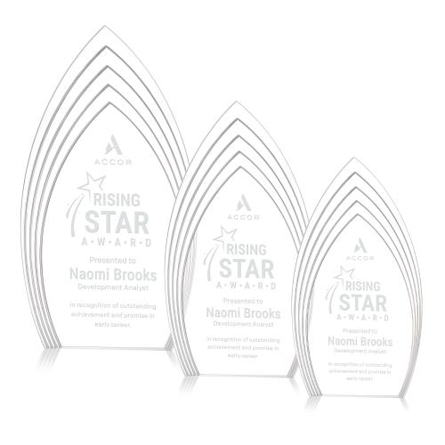 Of the Acrylic Awards, this beautiful Turello Award - Clear is a great choice. (AWD2312) The Turello Acrylic Award is a sleek, freestanding recognition piece designed to make a bold statement. Its modern, layered silhouette features a vibrant color accent at the base that beautifully reflects upward, casting a subtle glow throughout the entire award. Available in gold, sapphire, and clear, the Turello delivers a premium, contemporary aesthetic perfect for honoring excellence at any level.