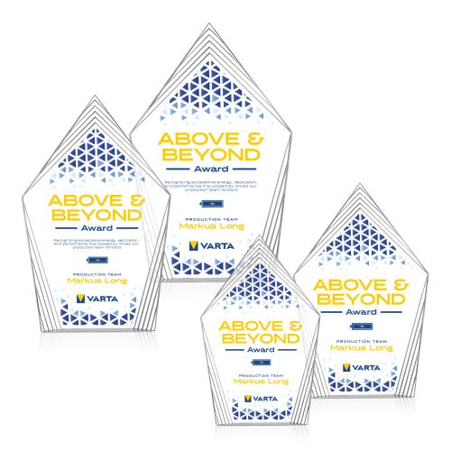 Of the Acrylic Awards, this beautiful Greyson VividPrint™ Award - Clear is a great choice. (AWDV2351) The Grayson VividPrint Award is a striking acrylic recognition piece that features layered geometric contours for a modern, dimensional look. Crafted from premium clear acrylic with precision-cut detailing, it offers exceptional clarity and a polished, high-end finish. Ideal for corporate recognition and achievement awards, the Grayson Award makes a bold statement while remaining elegant and timeless. Make your logo POP! with full-color VividPrint!