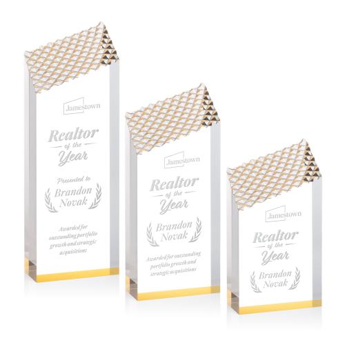 Of the Acrylic Awards, this beautiful Paluzzi Award - Gold is a great choice. (AWD3761-D) The Paluzzi Award is a modern freestanding acrylic piece that blends clean lines with elevated detail. Its sleek vertical shape is crowned with an angled, faceted texture accented in gold, adding dimension and visual impact. A subtle gold accent at the base completes the design, creating a refined contrast that makes this award stand out beautifully on display.