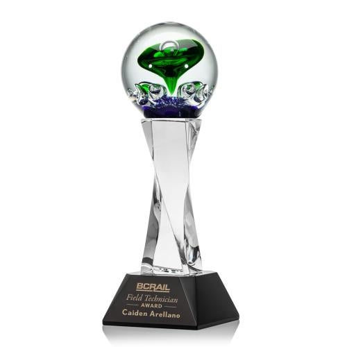 Of the Art Glass Awards, this beautiful Aquarius Award on Langport Base - Black is a great choice. (ARG2122-LK) A Stunning Hand Blown work of Art, the Aquarius Award is complete with a complimenting clear and black Optical Crystal Paragon base for personalization with a Logo or Name