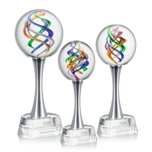 Of the Art Glass Awards, this beautiful Galileo Award on Willshire Base is a great choice. (ARG2042-WL) Experience the stunning spectrum of colors in the Galileo Art Glass Award! A Stunning Hand Blown work of Art Complete with a complimenting tall Willshire Optical base for personalization with a Logo or Name. Each piece is individually Hand-crafted. No two pieces are identical. All sizes are approximate and will vary from piece to piece.