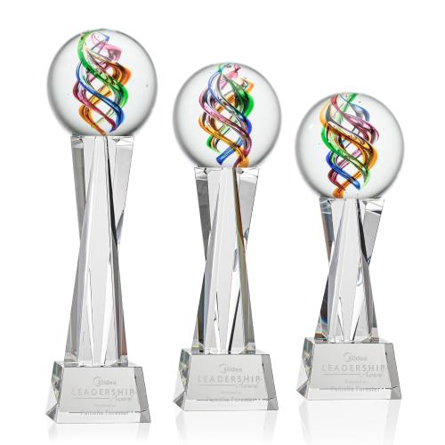Of the Art Glass Awards, this beautiful Galileo Award on Grafton Base - Clear is a great choice. (ARG2042-GC1) Experience the stunning spectrum of colors in the Galileo Art Glass Award! A Stunning Hand Blown work of Art Complete with a complimenting Clear, Green, Black or Blue Optical Grafton Base for personalization with a Logo or Name. Each piece is individually Hand-crafted. No two pieces are identical. All sizes are approximate and will vary from piece to piece. 1 Colorfill Included on blue, green, and black bases only.