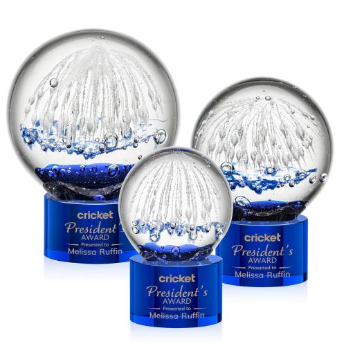 Of the Art Glass Awards, this beautiful Starburst Award on Marvel Base - Blue is a great choice. (ARG3011-ML) The Starburst Award is a stunning, hand-blown art glass masterpiece that radiates brilliance and craftsmanship. Each unique piece is individually hand-crafted, ensuring no two awards are exactly alike, adding to its distinctiveness. Complete with a complementary optical base for personalization.