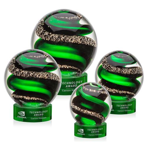 Of the Art Glass Awards, this beautiful Zodiac Award on Stanrich Base - Green is a great choice. (ARG2201-SG) Magnificent Striking Zodiac Art Glass Award features twisting ribbons of emerald and glimmering black speckles. Mounted on a Stanrich Base. Each piece is individually handcrafted and no two pieces are identical. Second Position Etch and Colorfill Optional.