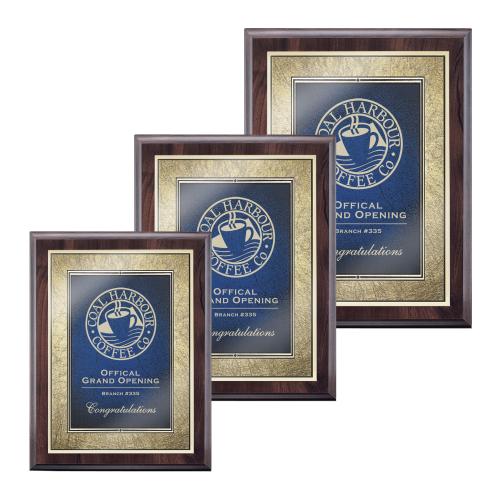 The Farnsworth/Tamara - Cherry/Blue plaques bring an air of sophisticated elegance to any recognition event. Expertly crafted with a high-gloss cherry or black piano finish, these plaques exude a classic warmth that complements their vibrant blue or rich burgundy accents. The laser engraved plates, adorned with an antique gold border, offer a timeless charm, customizable to honor achievements with a touch of prestige. Perfect for commemorating significant milestones, these plaques serve as a lasting tribute that recipients will display with pride. Whether for corporate accolades or personal milestones, make your next award truly memorable with this exquisite piece.