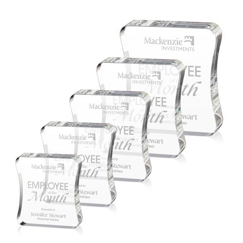 Honor milestones and applaud achievements with the beautifully designed Barre Award. This stunning crystal piece stands as a symbol of excellence and recognition, perfect for commemorating personal or professional triumphs. The sleek, curved design allows for maximum visibility, enhancing the deep etch of a customized message or logo. With its clear, high-quality material, the Barre Award captures light in a way that accentuates its refined elegance, ensuring it will be proudly displayed. Each award begins as a blank canvas, awaiting your personalized inscription to create a truly unique and memorable token of appreciation.