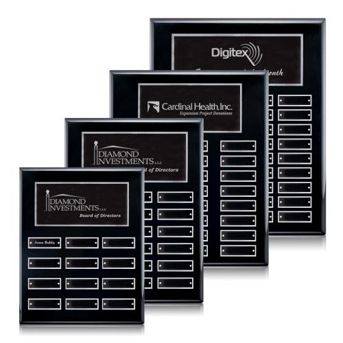 Of the Employee of the Month, this beautiful Oakleigh Vert Perpetual - Black/Silver is a great choice. (APP2712-ES) High-Gloss Piano Finish Rosewood or Black 6 Sizes *Perpetual Plaques include a decorated Header Plate. Perpetual Plaque Plates shipped Blank and Attached. *For Personalized Perpetual Plates, additional setup and run charges apply.
