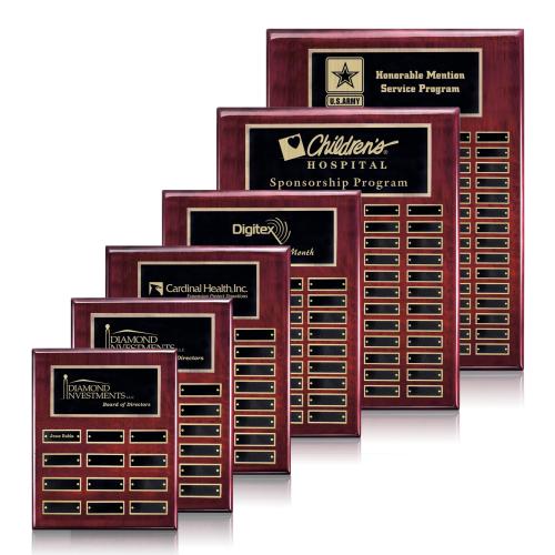 Of the Employee of the Month, this beautiful Oakleigh Vert Perpetual - Rosewood/Gold is a great choice. (APP2712-RG) High-Gloss Piano Finish Rosewood or Black 6 Sizes *Perpetual Plaques include a decorated Header Plate. Perpetual Plaque Plates shipped Blank and Attached. *For Personalized Perpetual Plates, additional setup and run charges apply.