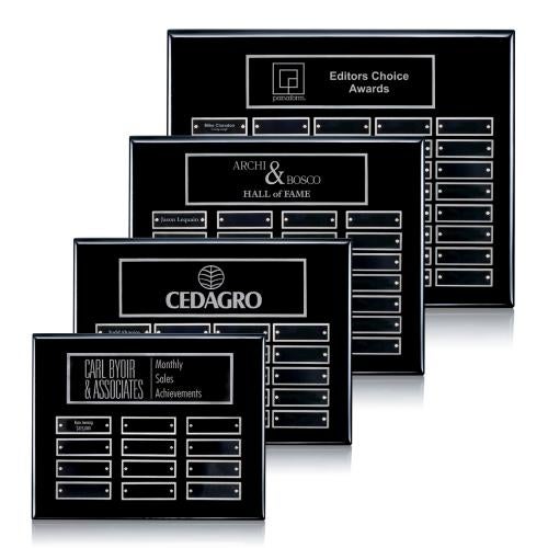 Of the Employee of the Month, this beautiful Oakleigh Horiz Pert/Plaque - Black/Silver is a great choice. (APP2812-ES) High-Gloss Piano Finish Rosewood or Black 4 Sizes *Perpetual Plaques include a decorated Header Plate. Perpetual Plaque Plates shipped Blank and Attached. *For Personalized Perpetual Plates, additional setup and run charges apply.