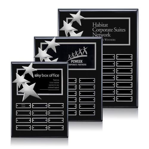 Of the Employee of the Month, this beautiful Constellation (Vert) Perpetual - Black/Chrome is a great choice. (APP6612-EC) High-Gloss Piano Finish Plaque 3 Constellation Stars Comes complete with 12, 18, or 28 Plates Available with Rosewood or Ebony Backing *Perpetual Plaques include a decorated Header Plate. Perpetual Plaque Plates shipped Blank and Attached. *For Personalized Perpetual Plates, additional setup and run charges apply.