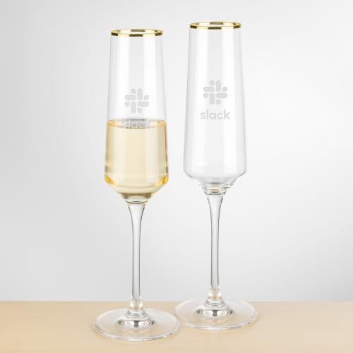 Of the Champagne Flutes, this beautiful Tucson Gold Rim Flute - Deep Etch is a great choice. (BWC6366-G) The Tucson Gold Rim Flute features a tall, slender silhouette designed to preserve bubbles and enhance the sparkle of champagne and sparkling wines. A delicate gold rim adds a refined, celebratory touch that elevates any toast. Perfect for corporate events, weddings, and recognition programs, this flute brings elegance and distinction to every occasion.