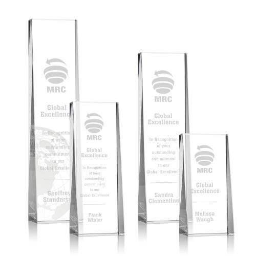 Of the Crystal Awards, this beautiful Milnerton Award is a great choice. (OPT982) The impressive Milnerton Optical Crystal Award is a freestanding tower with a slanted front to showcase your exceptional accomplishment. A striking monument for achievement recognition.