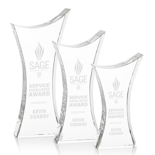 Of the Crystal Awards, this beautiful Keighley Award is a great choice. (OPT8601) The hourglass shape of the Optical Crystal Keighley award brings an organic softness to rigid clear optical crystal material making an artistic statement of form to any achievement.