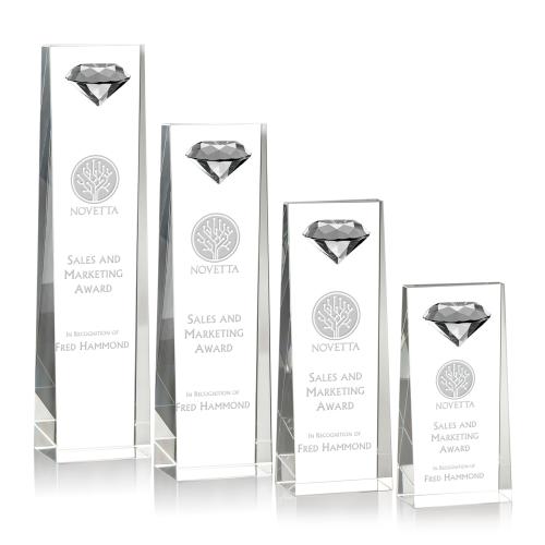Of the Crystal Awards, this beautiful Balmoral Gemstone Award - Diamond is a great choice. (OPT8011) Our tapered optical crystal tower is highlighted with a sparkling faceted diamond gemstone to give your accomplishment 100 carat prominence.