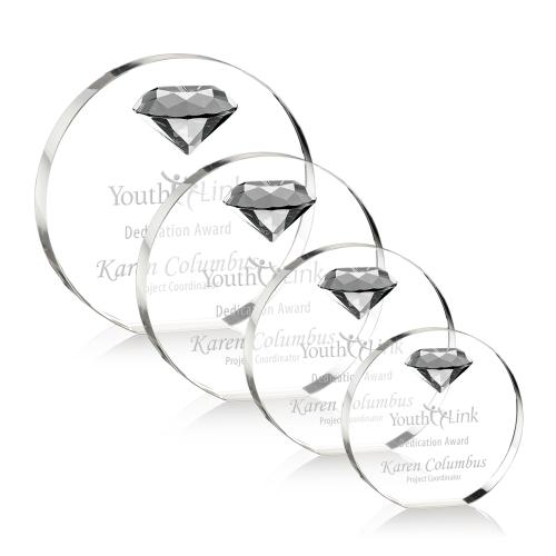 Of the Crystal Awards, this beautiful Anastasia Gemstone Award - Diamond is a great choice. (OPT8002) Our tapered optical crystal disc is highlighted with a sparkling faceted diamond gemstone to give your accomplishment 100 carat prominence.