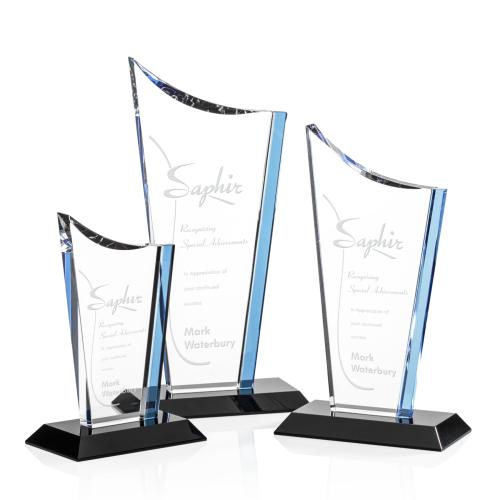 Of the Crystal Awards, this beautiful Harris Award is a great choice. (OPT4171) The Harris Award features a flaring clear optical crystal upright with a deeply curved top bevel, full-length blue optic accent on one side, and a beveled black optic base. An award that takes full advantage of both color contrast and the sparkling clarity and reflectivity of optical crystal.