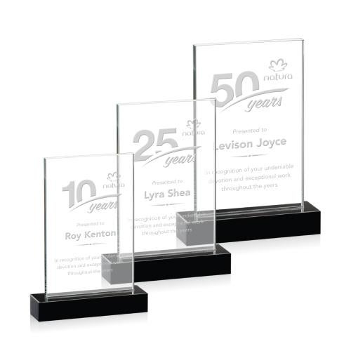 Of the Crystal Awards, this beautiful Fife Award is a great choice. (OPT1751) This clear Optical Crystal rectangle is mounted to a thick Black Optical Crystal base to create this classic award of timeless beauty.