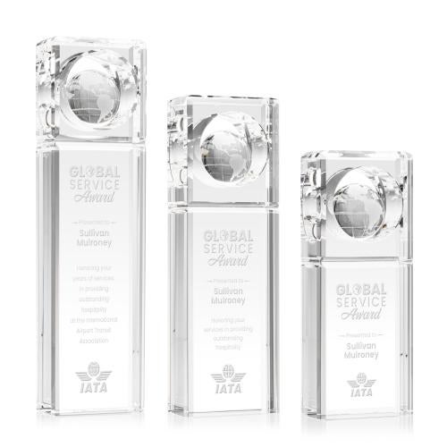 Of the Crystal Awards, this beautiful Waterloo Globe Award is a great choice. (OPG571) The Optical crystal Waterloo Globe Award features a beautiful Globe housed in a round cut-out Underlined by a Groove. Available in 3 Sizes.