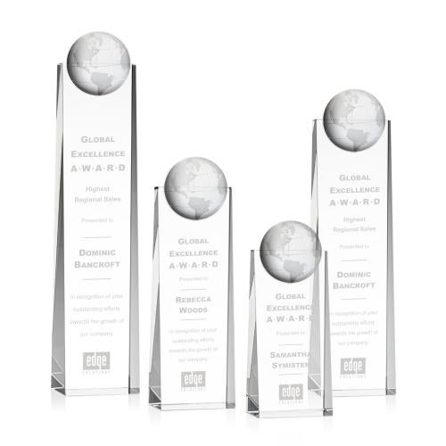 Of the Crystal Awards, this beautiful Sherbourne Globe Award is a great choice. (OPG361) Wonderful tall optical piece with a 3D Globe mounted on the front. A statuesque piece to recognize a global trailblazer. Available in 4 Sizes