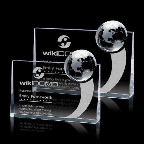 Of the Crystal Awards, this beautiful Erminia Globe Award is a great choice. (OPG222) Thick free standing Optical Crystal adorned with a deep etched optical globe. Perfect for global recognition or multinational achievement awards.