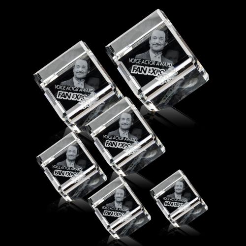 Of the Crystal Awards, this beautiful Carlton Cube 3D Award is a great choice. (OPD631) Beautiful 3 Dimensional etching inside the crystal that makes for a very unique display. This award features double beveled edges all around and is available in many shapes & sizes. **Our 3D Pop process creates a simulated 3D effect from a 2D photo. For a true 3D engraving, please provide a 3D engraving file (.obj), or we can redraw it for a fee.**