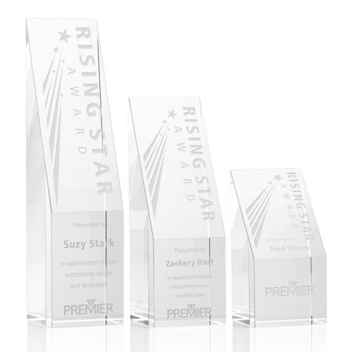 Of the Crystal Awards, this beautiful Braxton Award is a great choice. (OP591) The Braxton is a squared block of flawless optical crystal with a steeply sloped rectangular face for principal artwork decoration. A simple but impressive award of weight and sparkling clarity. Second Position Etch Included.