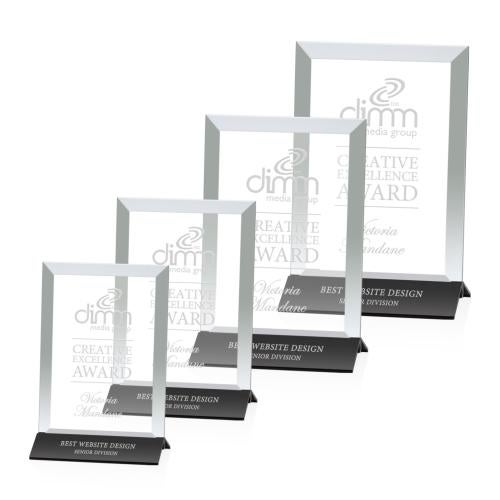 Of the Crystal Awards, this beautiful Rainsworth Award - Black/Vertical is a great choice. (AWS746-KV) An elegant pane of starfire crystal is beveled, then mounted in a satin black powder coated aluminum base to construct this understated award of unparalleled beauty.