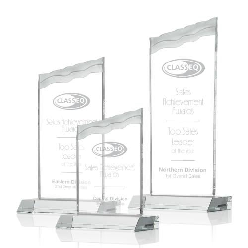 Of the Crystal Awards, this beautiful Oakwood Award - Clear is a great choice. (AWS2912) The beautiful Oakwood Award features a deep carved waterfall effect that cascades on the top of the piece. With a dazzling Clear front mitered base, this award is the perfect way to frame your words of recognition.