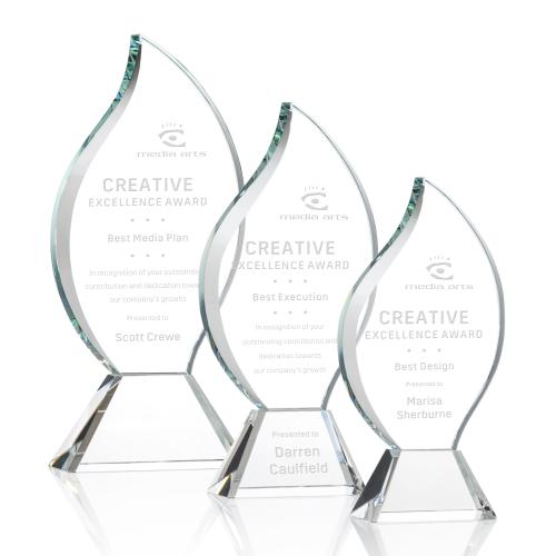 Of the Crystal Awards, this beautiful Norina Flame Award - Clear is a great choice. (OPT2321) The statuesque Optical Crystal Norina Award features an elegant Flame with a sweeping bevel and mounted on a thick tapered clear or colored optical crystal base. A magnificent recognition piece for an exceptional achievement. Second position etch and colorfill optional.