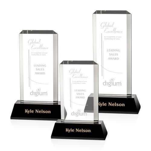 Of the Crystal Awards, this beautiful Carrier Award - Black is a great choice. (OPT1971-K) The rectangular optical crystal award features front and back intersecting facets that echo the angles of the beveled black optical crystal base. 2nd position optional.