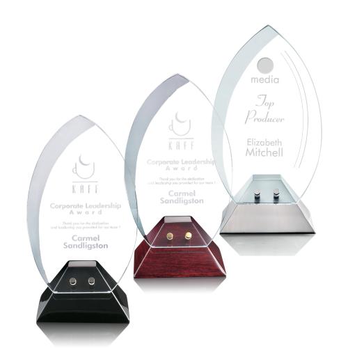 Of the Crystal Awards, this beautiful Vulcan Award is a great choice. (AWS6614R) The Vulcan Award features a Starfire Crystal Crescent with a beveled accent rising from a tapered base in Satin Nickel or Piano Finish Black or Rosewood. A dramatic award presentation for recognizing excellence.