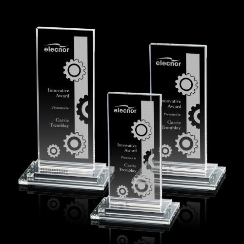 Of the Crystal Awards, this beautiful Santorini Award - Clear is a great choice. (AWS5701) The tall Santorini award is a large panel of luminescent starfire glass that shimmers from its top to its thick stacked double base.