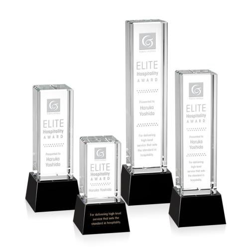 Of the Crystal Awards, this beautiful Robson Award on Base - Black is a great choice. (OPT4011-K) Brilliant tall Optical Crystal Columns are the perfect award to recognize a stunning achievement with light refracting through the beveled edges creating a grand and opulent award. Available in clear, black or blue base or freestanding. See associated items.