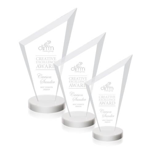 Of the Crystal Awards, this beautiful Condor Award - White is a great choice. (AWS5101-W) Exquisite Deep Bevels accentuate this striking Starfire award. Mounted on a round White Optical Base and available in 3 sizes.