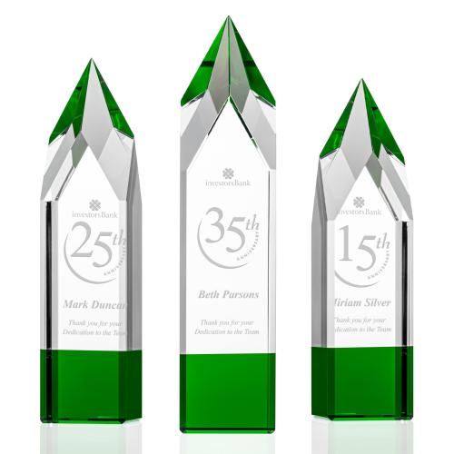 Of the Crystal Awards, this beautiful Coventry Award - Green is a great choice. (OPT7401-G) Shades of Brilliant Optical Emerald and Clear Optical Crystal combine to create a dramatic work of recognition. Perfect for recognizing an environmental achievement or a top performer.