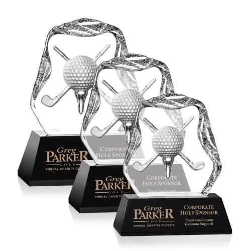Of the Crystal Awards, this beautiful Slaithwaite Golf Award - Black is a great choice. (GLF6261-K) Our deep relief crystal golf ball and crossed clubs is carved inside a crystal iceberg, mounted to a black optical crystal base, ready to celebrate any victory on the green with exquisite perfection. 1 Colorfill Included.