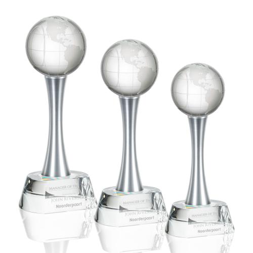 Of the Crystal Awards, this beautiful Willshire Globe Award - Clear is a great choice. (OPG8851) The statuesque Willshire Globe Award features an Optical Crystal Globe perched atop a waisted aluminum pillar and mounted on a thick optical base. Perfect for recognizing a global achievement.