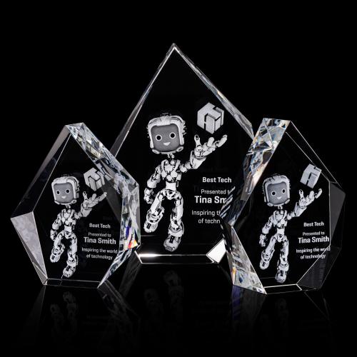 Of the Crystal Awards, this beautiful Brickell 3D Award is a great choice. (OPD4131) The Brickell Dimensions 3D award features a Solid Optical Crystal Block with an abstract design using asymmetrical bevels and facets to create a masterpiece of crystal recognition. The Striking bevels create a sparkling light display that frames your words of achievement. **Our 3D Pop process creates a simulated 3D effect from a 2D photo. For a true 3D engraving, please provide a 3D engraving file (.obj), or we can redraw it for a fee.**