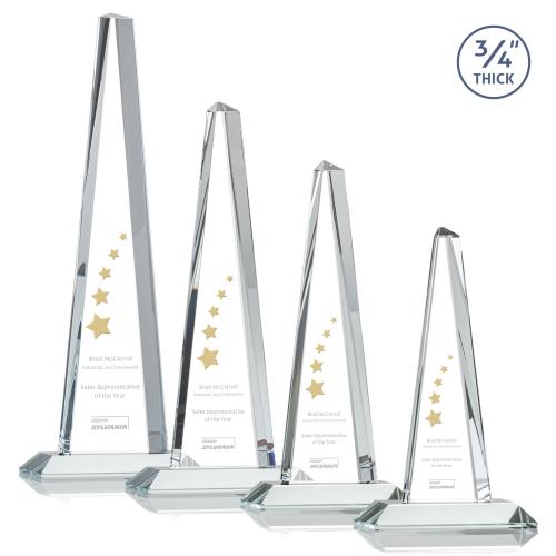 Of the Crystal Awards, this beautiful Majestic Tower Award - Clear is a great choice. (AWS1101) Make a monumental statement with the Majestic Tower Award. Featuring a statuesque 3/4" thick Starfire Crystal tower with a Starfire Crystal base, this work of recognition is the perfect way to reward an outstanding achievement. Colorfill optional.
