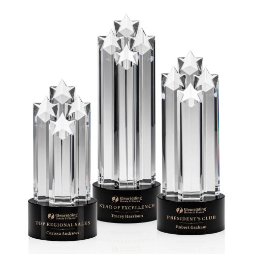 Of the Crystal Awards, this beautiful Ascot Star Award - Black is a great choice. (OPS7111-K) The Spectacular Ascot Star Optical Crystal Award features four statuesque Optical shooting stars reaching to astronomical new heights. With an Optical Ebony Crystal Base, the Ascot Award is an excellent monument to recognize a stellar accomplishment.