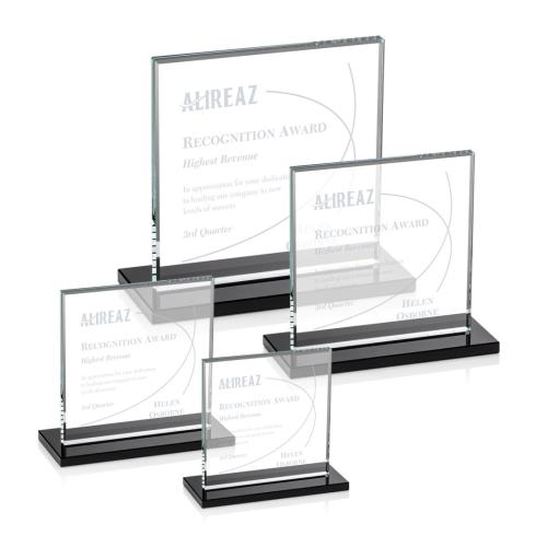 Of the Crystal Awards, this beautiful Sahara Award - Black is a great choice. (AWS3301-K) Bold Sahara Award features a 0.5" thick Starfire crystal mounted on a vibrant flat edged colored base for a spectacular work of achievement recognition.