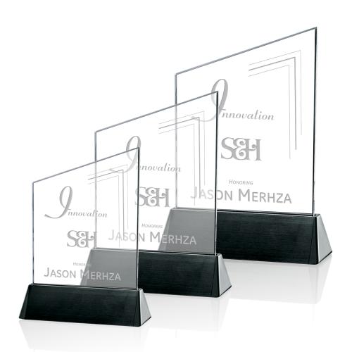 Of the Crystal Awards, this beautiful Sierra Peak Award - Black is a great choice. (AWS7812-K) The stunning Sierra Series offers a wide variety of shapes and sizes, each paired with a sleek black aluminum base for a modern and sophisticated look. Optional second position laser engraving/imprint on the base allows for personalized branding or recognition.