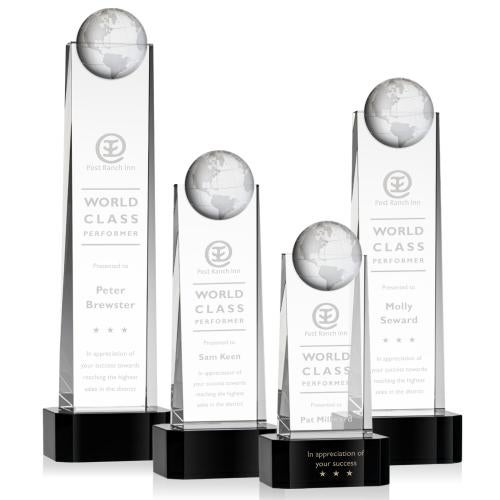 Of the Crystal Awards, this beautiful Sherbourne Globe Award on Base - Black is a great choice. (OPG361-K) Wonderful tall optical piece on a Black Optical base with a 3D Globe mounted on the front. A statuesque piece to recognize a global trailblazer.